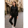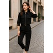 Siyah Gömlek Yaka Fermuarlı Kadın Alt Üst Takım Şık Ve Rahat Günlük Kombin Çok Renkli