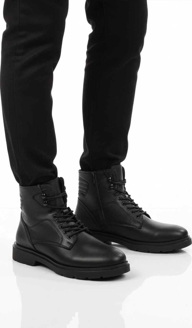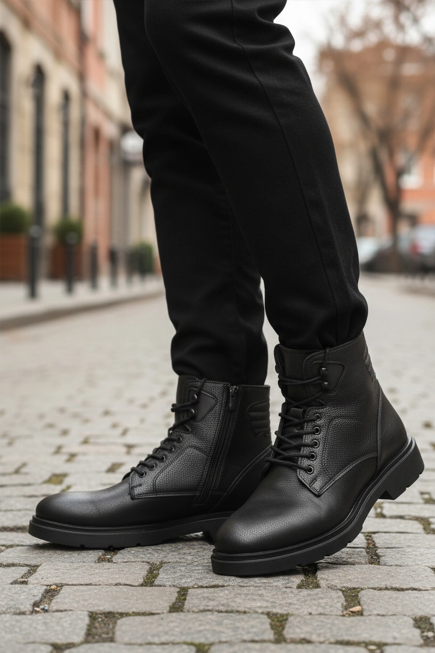 Siyah İçi Polarlı Kaymaz Fermuarlı Bağcıklı Erkek Bot 562 M Siyah