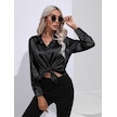 Siyah İlkbahar Ve Sonbahar Kadın Gömlek Saten Gömlek Mizaç Banliyö Uzun Kollu Üst Siyah