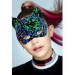 Siyah Kadife Kumaş Üzerine Mavi Yeşil Payetli Pullu Parti Maskesi 16x14 Cm