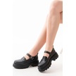 Siyah Kadın Günlük Yüksek Tabanlı Loafer Ayakkabı Siyah