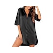 Siyah Kadın Leke Bluz Gömlek Kısa Kollu Siyah Katı Gevşek Uzun Versiyon Casual Tops Siyah