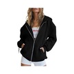 Siyah Kadın Sevimli Kapüşonlular Genç Kız Sonbahar Ceket Büyük Boy Tişörtü Cepli Günlük İpli Fermuarlı Kapüşonlu Üst Siyah