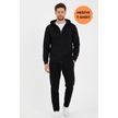 Siyah Kapüşonlu Regular Fit Hırka Düz Paça Erkek Eşofman Takımı 3861 Siyah