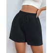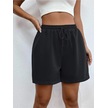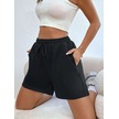 Siyah Kısa Basic Şort - Penye Baskısız Kordonlu Siyah