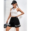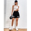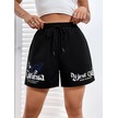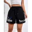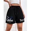 Siyah Kısa Californi West Coast Şort - Penye Baskılı Kordonlu Siyah