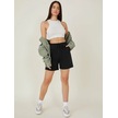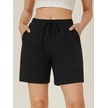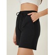 Siyah Kısa Düz Renk Baskısız Şort - Penye Baskısız Kordonlu Siyah