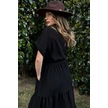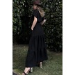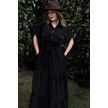 Siyah Kısa Kol, Airobin Kumaş, Yarım Patlı, Kemerli/kuşaklı, Eteği Pliseli, Cepli Maxi Uzun Elbise Siyah