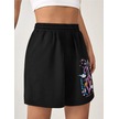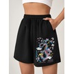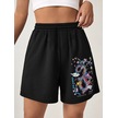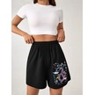 Siyah Kısa Renkli Dragon Şort - Penye Baskılı Kordonlu Siyah