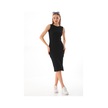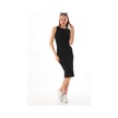 Siyah Kolsuz Diz Altı Fitilli Esnek Kalem Elbise