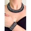 Siyah Kristal Taşlı Türk El Yapımı Gerdanlık Kolye Ve Bilezik Set Siyah