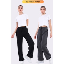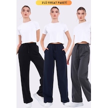 Siyah-lacivert-antrasit-gri Mevsimlik Salaş Geniş Rahat Paça Yandan Cepli Kadın 4'lü Eşofman Altı Cmreb67-4 001
