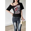 Siyah Lakeside Omuz Dekolteli Askılı Y2k Kısa Kollu Crop-17997 Siyah