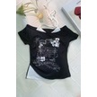 Siyah Nuit Magique Madonna Yaka Ek Askılı Y2k Kısa Kollu Full Body Crop-18335 Siyah