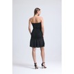 Siyah Önden Halkalı Bel Kısmı Açık Cift Kat Kloş Etekli Elbise Siyah