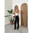 Siyah Önü Çapraz Düğme Detaylı Kumaş Pantolon Siyah