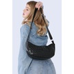 Siyah Örgü Görünümlü Yarım Ay Çapraz Askılı Çanta 256 Siyah