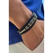 Siyah Örgülü El İşçiliği İle Üretilmiş Hakiki Deri Erkek Bileklik Siyah - Gri