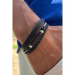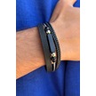 Siyah Örgülü Taşlı El İşçiliği İle Üretilmiş Hakiki Deri Erkek Bileklik Siyah