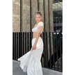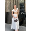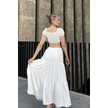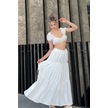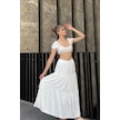 Siyah Pileli Katlı Maxi Etek Beyaz