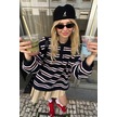 Siyah Polo Yaka Çizgili Kadın Triko Kazak Mg2469 Siyah