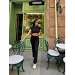 Siyah Polyamid Elastan Crop İki İplik Takım Siyah