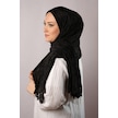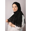 Siyah Pratik Hazır Geçmeli Tesettür Eşarp Fukuro Piliseli Çiçek D Siyah