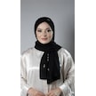 Siyah Pratik Hazır Geçmeli Tesettür Şal Örme Kumaş Taşlı Çiçek Desenli 2118c 01