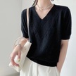 Siyah Qooth Kadın V Yaka Kısa Kollu Taban Gömlek Ofis Bayan Moda Zarif Ince Örgü Üst İlkbahar Yaz Qt2038 Siyah