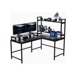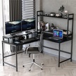 Siyah Raflı L Şekilli Ofis Masası 610 Siyah
