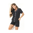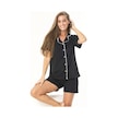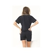 Siyah Renk Biyeli Pamuklu Kısa Kol Şort Pijama Takımı Siyah
