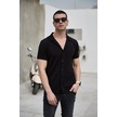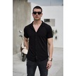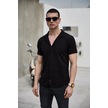Siyah Renk Dokulu Kısa Kol Erkek Gömlek-1582 Siyah