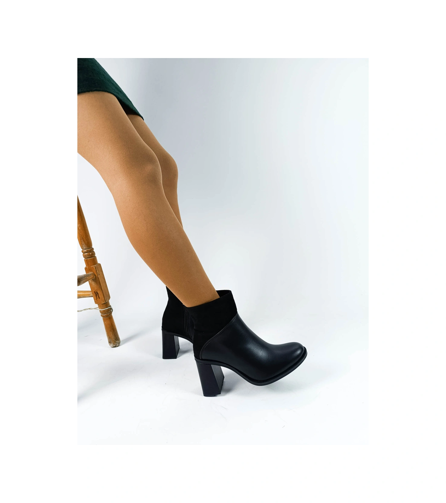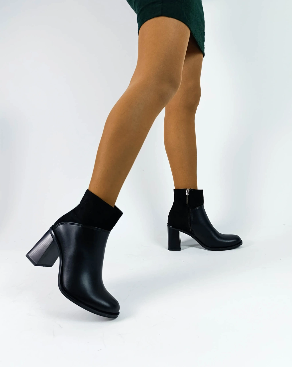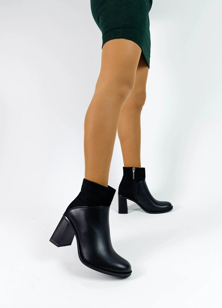 Siyah Renk Fermuarlı Kalın Topuk Süet Cilt Kadın Topuklu Bot Siyah