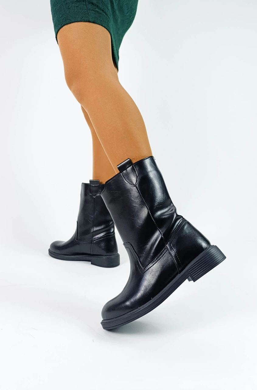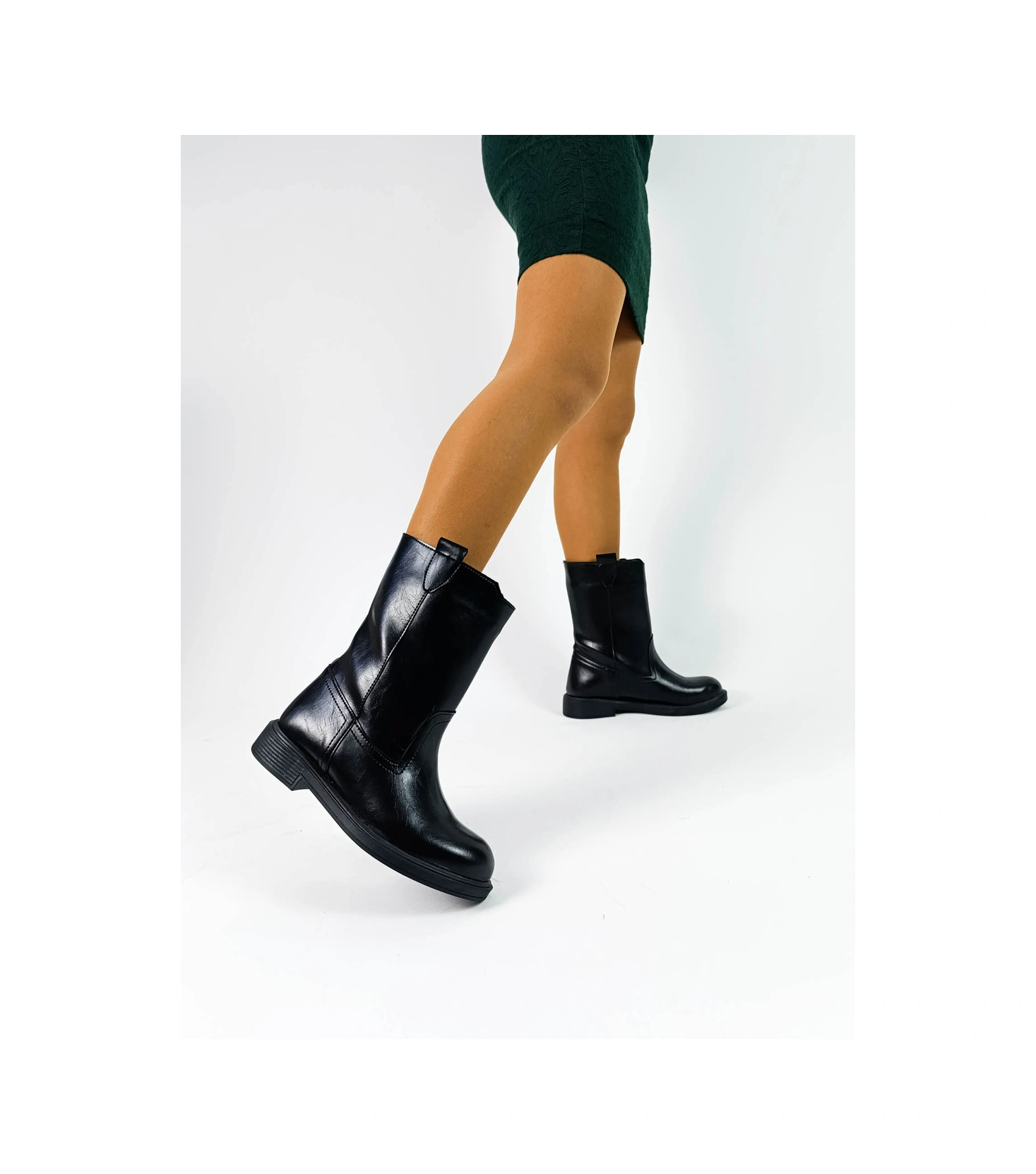 Siyah Renk Fermuarsız Kalın Düz Taban Çekme Kadın Bot Siyah
