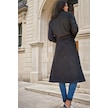 Siyah Şal Yaka, Cepli, Kuşak Detaylı, Astarsız, Uzun Kaban Siyah