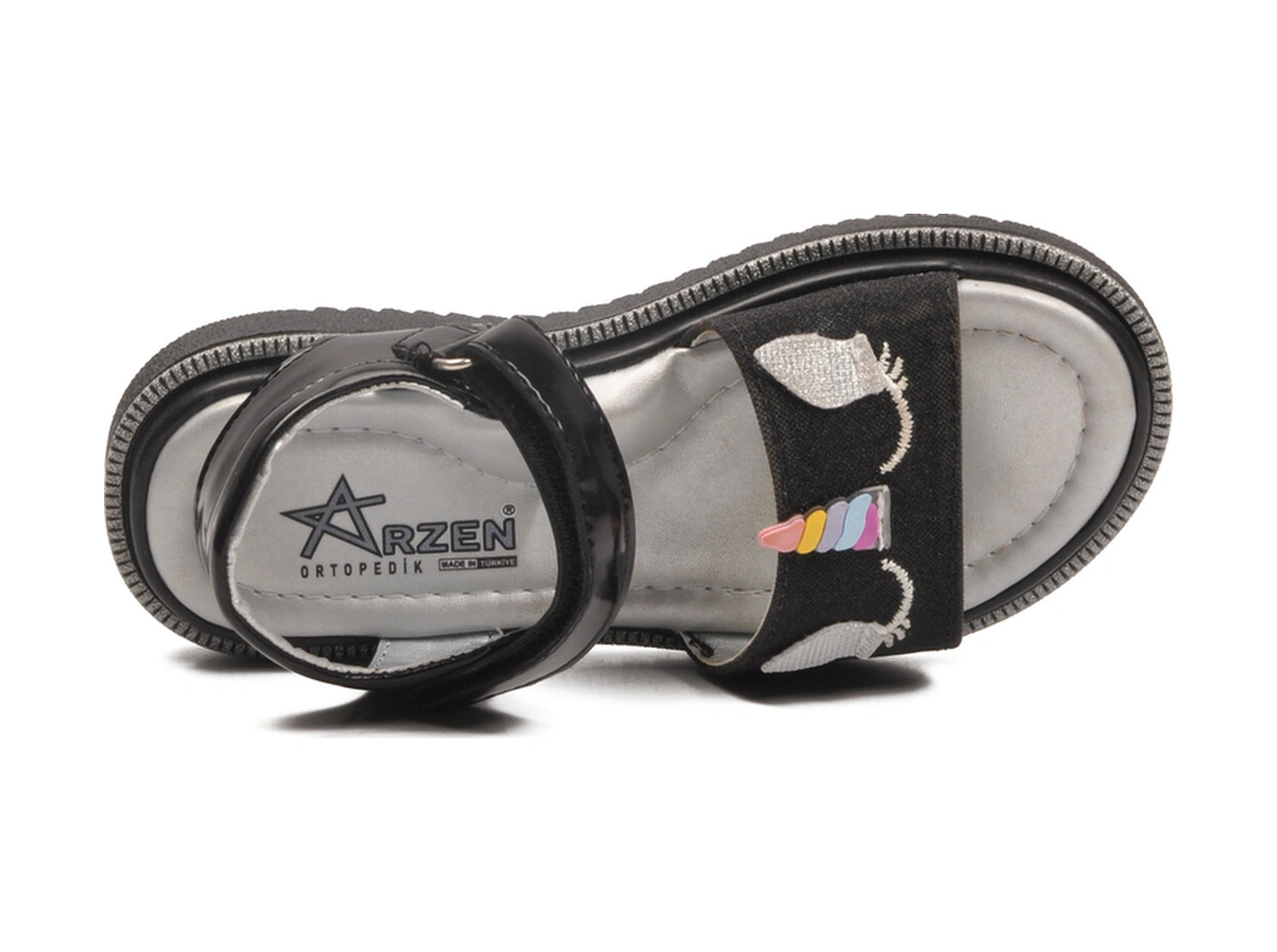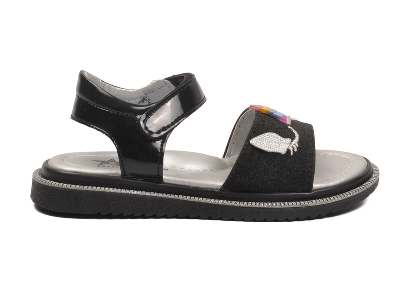 Siyah Simli Cırtlı Ortopedik Kız Çocuk Sandalet 25t105 P Siyah Simli