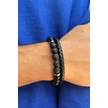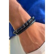 Siyah Taşlı El İşçiliği İle Üretilmiş Hakiki Deri Erkek Bileklik Siyah - Beyaz