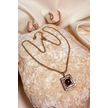 Siyah Taşlı Kare Kesim Zirkon Model Altın Gold Renk Zincir Kadın Paslanmaz Çelik Kolye