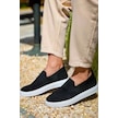Siyah Triko Yüksek Taban Bağcıksız Günlük Erkek Ayakkabısı Siyah