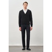 Siyah Uzun Kol Örme V Yaka Comfort Fit Rahat Kesim Klasik Triko Siyah
