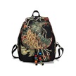 Siyah Vintage Kadın Sırt Çantası Nakış Tavuskuşu Payet Sırt Çantası Ulusal Boho Boncuk Seyahat Okul Çantası Siyah