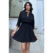 Siyah Yaka Detaylı Kloş Elbise Siyah