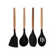 Siyah Yeşil Silikon Mutfak Pişirme Gereçleri Seti Yapışmaz Tencere Spatula Kürek Yumurta Çırpıcı Ahşap Saplı Mutfak Alet Seti 4pcs Siyah