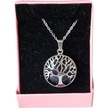 Siyah Yıldız Doğal Taşlı Hayat Ağacı Çelik Kolye - Kadın