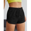 Siyah Yırtmaçlı Bermuda Penye Şort - Penye Baskılı Kordonlu Siyah