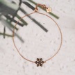 Siyah Zirkon Taşlı Pırlanta Montür Rose Altın Kaplama Asansörlü Çiçek Desenli Gümüş Bileklik Gümüş - Rose Gold