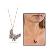 Siyah Zirkon Taşlı Zarif Tasarım Rose Renk 925 Ayar Gümüş Kelebek (459601787)