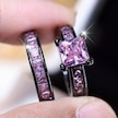 Siyah&mor 2 Adet Zarif İstifleme Yüzükler Kare Mor Pembe Beyaz Zirkon Taş Yüzükler Kadınlar İçin Set Düğün Parti Parmak Takı 12 Çok Renkli