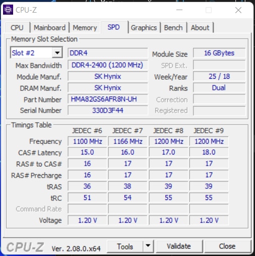 SK Hynix HMA82GS6AFR8N-UH 16 GB PC4-19200 DDR4 2400 MHz CL17 Laptop Ram