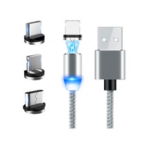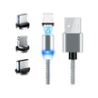 Skycity 2m Uzunluklu Nylon Alüminyum三合一magneşli Şarj Kablosu - Micro Usb, Type-c, Lightning Uçları, Led Gösterge, Sık Tak-çık Olmadan, 5v 2.4a Hızlı Şarj, Gümüş Renk